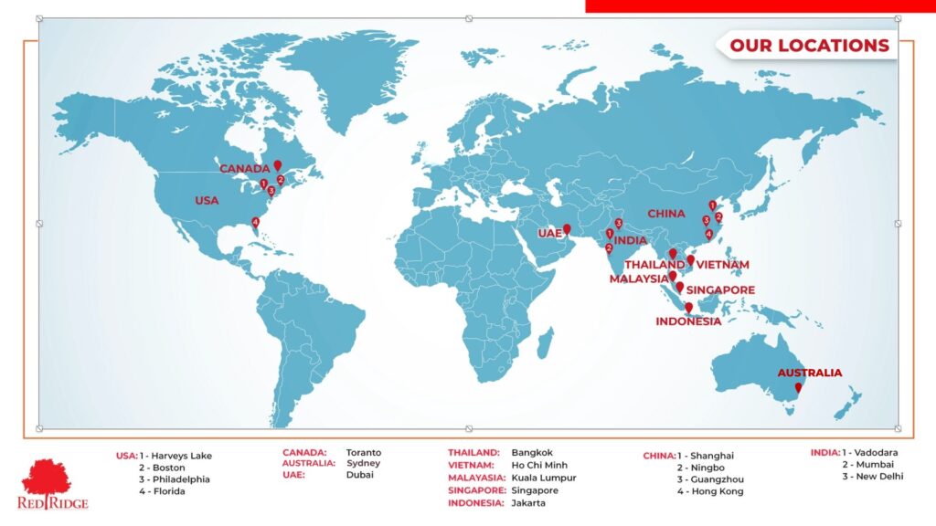 CHINA: Red Ridge Global, SUITE 802, Building B, No. 3051, Hechuan Rd, Minhang District, Shangai – 201103.